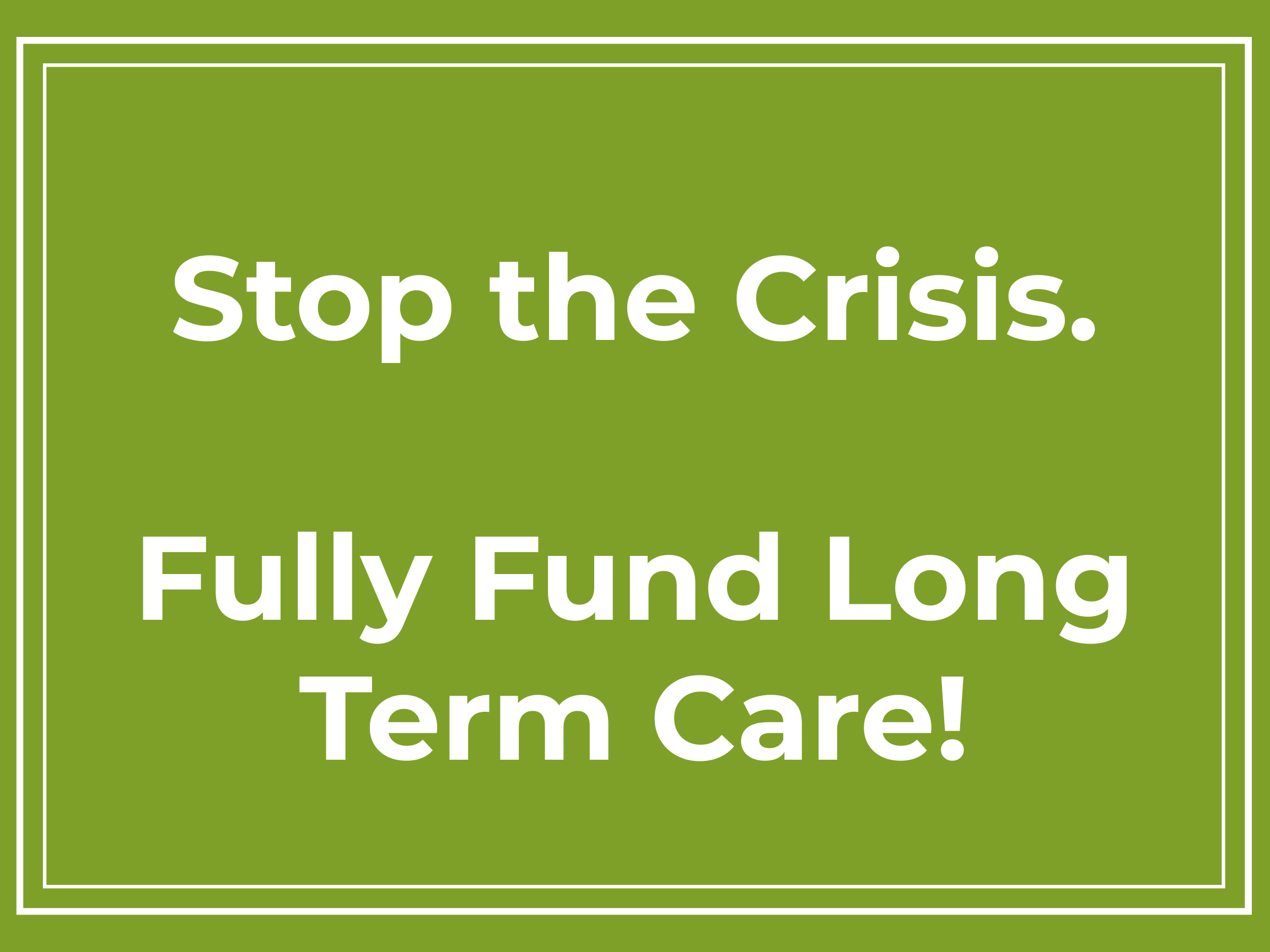 A key method to capture legislative leadership’s attention over the next two weeks will be through social media. Please join us in a social media campaign, urging the State to “Stop the Crisis and Fully Fund Long-Term Care!”